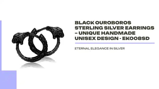 Black Ouroboros Sterling Silver Earrings – Unique Handmade Unisex Design - ek008sd