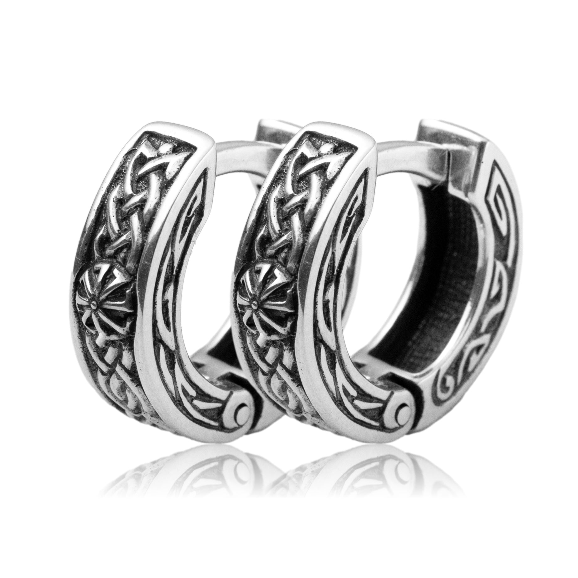 Hoop earrings celtic ornament sterling silver